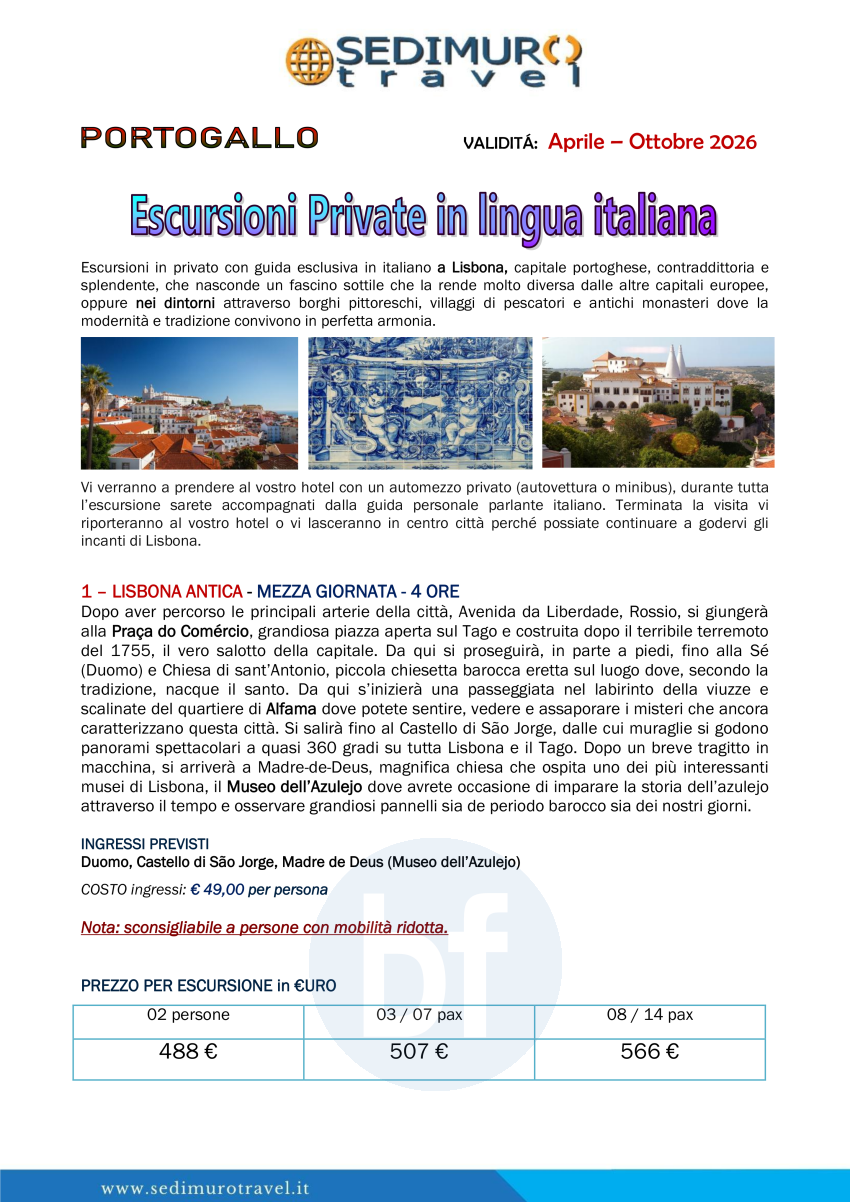 Escursioni private in lingua italiana da Lisbona HD / FD