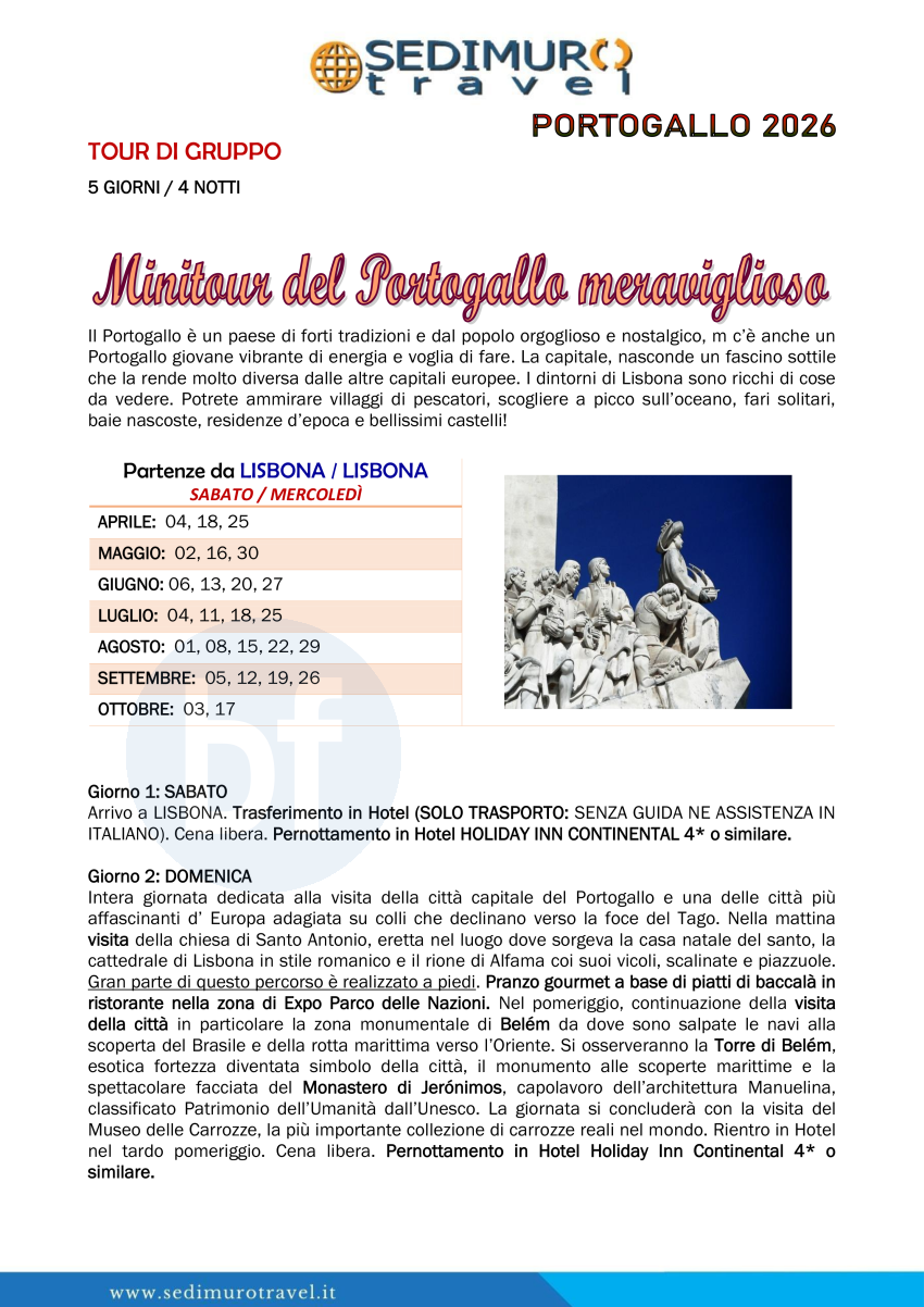 Minitour del Portogallo meraviglioso da Lisbona 5 giorni